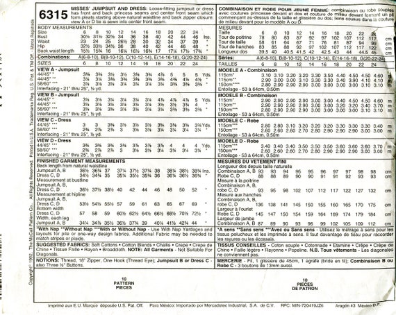 Mccalls Sewing Pattern 6315 Misses Jumpsuit And Dress Size 6 8 10 Uncut Ff 23795631518 Ebay