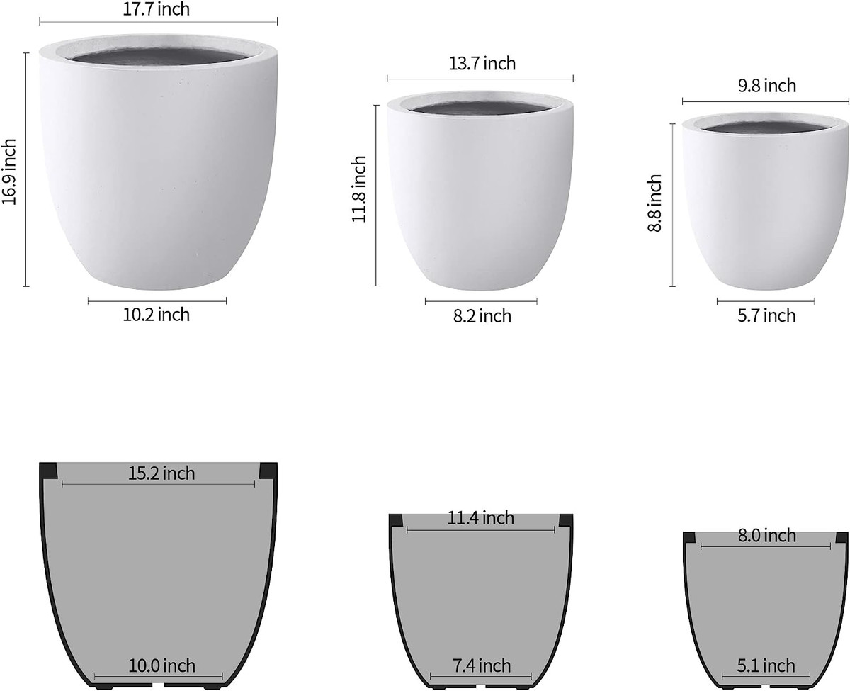 Kante 18 14 And 10 W Pure White Concrete Round Planters Set Of 3 Outdoor Indoor Modern Planter Pots Lightweight Weather Resistant Seamless With Drainage Hole Rc0050abc C80011 Patio Lawn Garden Amazon Com